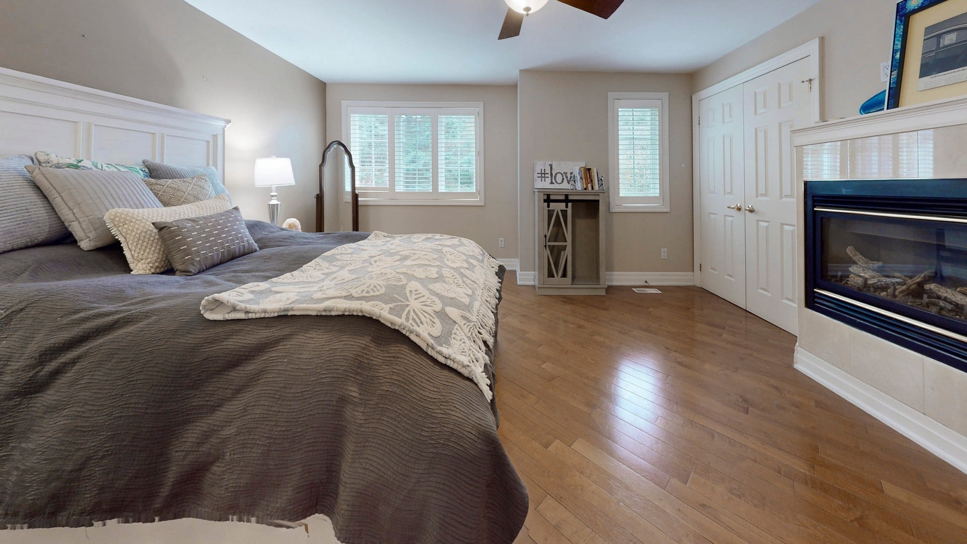 The home itself is filled with warm and inviting details. Three gas fireplaces create a cozy atmosphere throughout the different living spaces, making each level feel welcoming and full of character. A skylight brings in beautiful natural light, while ceiling fans add comfort and practicality. I also love the Juliette balcony, which adds charm and a touch of elegance to the home’s design.
