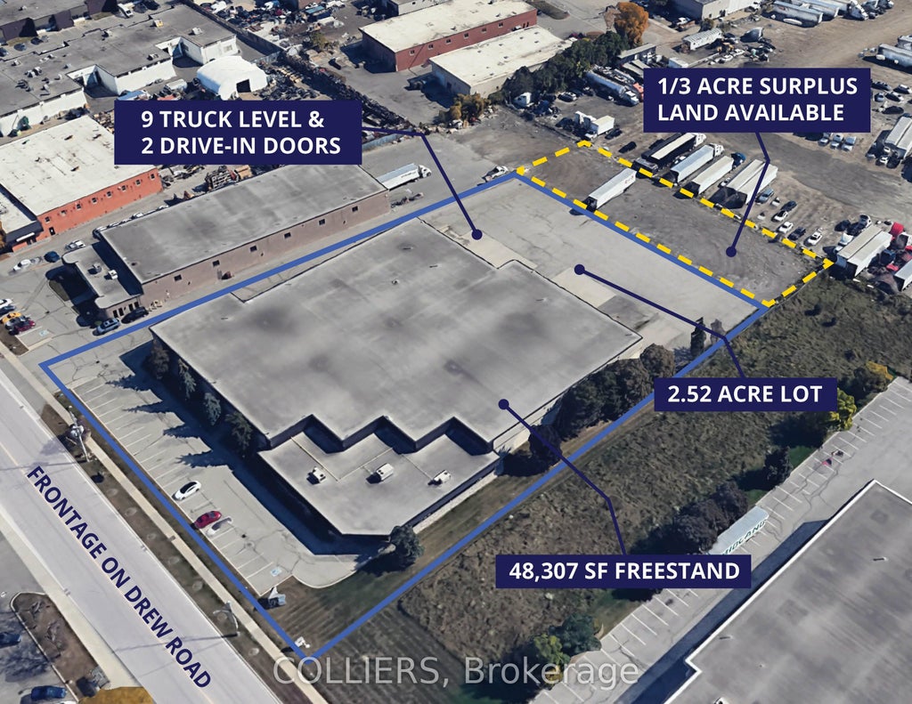Super Rare Freestand with Approx. 1/3 acre of surplus land (+/-15 trailer positions) available. White-boxed Warehouse. Freestanding building with immediate access to Pearson Airport, major highways, and transit. Recently renovated with upgrades to doors, LED lighting, floors, and offices. High dock door ratio: 9 dock doors and 2 drive-in doors. Secured and paved yard with 53 trailer access. Immediate vacant possession. Ample power (600 amps).