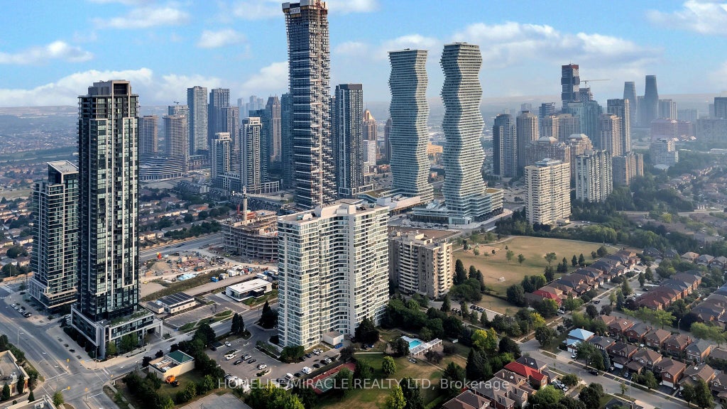 Location matters - and nothing beats living in a family friendly condo building where commute, neighborhood, walking score, school and facilities are topnotch. This 1020 Sq Ft spacious 2 + 1 bedroom suite offers an exceptional blend of space, style, and location in one of Mississauga's most charming communities. The fully renovated (June 2025) sun-drenched, air-filled end unit features a large open-concept living & dining area, connected to a modern kitchen with contemporary cabinetry, quartz countertops, all new stainless steel appliances, a breakfast area and ample storage. Private primary bedroom includes a semi ensuite bathroom, glass door his & her closet and stunning views  even with a king-size bed, there's still plenty of space for additional furniture. The second bedroom features a large glass door closet and unobstructed beautiful view. A den with city and panoramic view has enormous option of uses. It could be converted 3rd bed, home office or an open space to enjoy the amazing natural beauty and entertain the guest. A huge in-unit storage room for your convenience. Brand new in-suit laundry. Enjoy one of the lowest monthly maintenance fees (covers all utilities: heat, hydro, water, AC) in the neighborhood. Recently renovated building featuring an upgraded lobby, entrance, 4 elevators with a fresh, elegant look. Building managed by a proactive & sincere management team. Ample Visitor parking available. Public transit at your doorstep, easy access to Hwy 403,quick commute to downtown and across the city. Enjoy nearby green spaces. All your essentials are within reach. Square one mall, the living arts Centre, banks, dental/medical clinics, Tim Hortons, McDonald's, Walmart, restaurants, grocery stores, daycares, gas stations, places of worship, ethnic markets, hospital all close by. This is more than just a home  it's a lifestyle. Style, functionality, and affordability come together in one perfect package. Make it your home  book your showing today!
