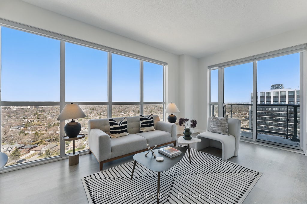 Welcome to Suite #2409 - perched just beneath the penthouse, this exceptional residence captures the essence of elevated living with breathtaking panoramic views of the city, lake, and skyline; views that only a corner suite can offer. Sunlight pours in through expansive floor-to-ceiling windows, wrapping the space in warmth and energy throughout the day. Designed for both comfort and sophistication, this split 2-bedroom layout offers the perfect blend of functionality and style. The heart of the home is a chef-inspired kitchen, complete with quartz countertops, designer soft-close cabinetry, sleek newer appliances and a glass tile backsplash that adds a polished edge. A stylish dining/breakfast bar makes entertaining easy, while the open-concept living and dining area flow effortlessly to your private balcony, your front-row seat to stunning views and city lights. Retreat to the tranquil primary suite, where stunning vistas meet comfort, complete with a spacious closet and a 3pc ensuite with glass-door shower. The second bedroom offers flexibility for guests, a home office, or a personal sanctuary, complemented by a serene main bathroom with a soaker tub. Enjoy thoughtful features like high ceilings, wide-plank flooring and a layout that maximizes both privacy and flow. Residents enjoy top-tier amenities: 24hr concierge, rooftop terrace, BBQs, party & theatre rooms, co-working hub, yoga studio, kids playroom, bright modern gym, and more. Owned parking and locker add peace of mind. You're steps to Kipling Subway & Go Train Stations, top schools, parks, shopping, dining, and major highways. This is your chance to live above it all...comfort, convenience, and captivating views await.