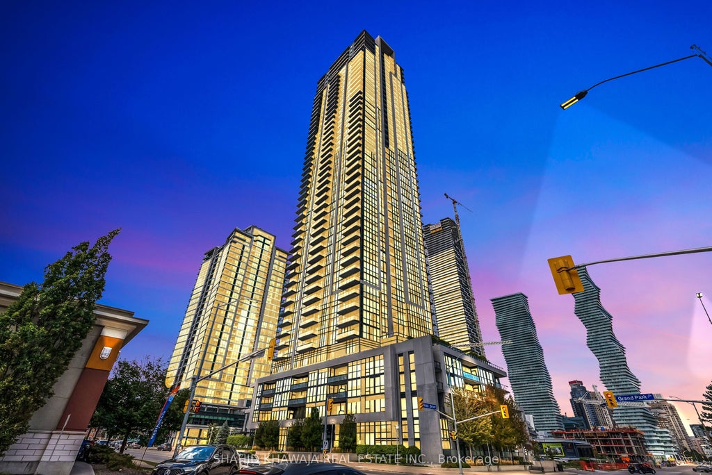 *View Virtual Tour*Welcome to a prestigious condo residence in the heart of Mississauga's vibrant City Centre! This spacious 2+1bedroom, 2-bath suite an open-concept living space with breathtaking southwest views. The bright living and dining areas feature floor-to-ceiling windows and laminate flooring throughout, creating a warm and inviting atmosphere. The modern chefs kitchen boasts quartz countertops, stainless steel appliances, and a sleek backsplash, perfect for everyday living and entertaining. The primary bedroom includes a 3-piece ensuite bath, while the second bedroom and enclosed den provide versatile options for guests, a home office, or a study. Enjoy the outdoors from your large open balcony, overlooking the skyline and lake. Additional conveniences include ensuite laundry, an owned locker, and one underground parking space. Residents of Grand Park enjoy resort-style amenities, including a fitness centre, indoor pool, party room, rooftop terrace, and 24-hour concierge. Located steps from Square One, Sheridan College, Celebration Square, parks, restaurants, transit, and major highways, this is downtown Mississauga living at its best!