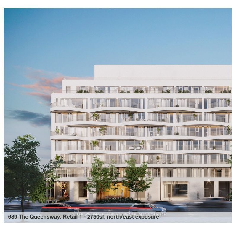 FOR LEASE PRIME COMMERCIAL SPACE IN REINA CONDOS, ETOBICOKE. Approx. 1000 sq ft. Welcome to Reina Commercial Space, a modern and uniquely designed boutique building in the heart of Etobicoke. This brand-new commercial unit offers an open-concept layout with floor-to-ceiling windows, allowing for an abundance of natural light and a sleek, contemporary feel. With ceiling heights of up to 12 feet, the space provides an airy, spacious environment perfect for a variety of business uses. Located just three minutes from the QEW, this high-visibility location on The Queensway provides excellent accessibility for businesses looking to establish or expand in a thriving area. The unit is expected to be available around August 1st, upon building registration. Ample parking around the building, plus one private parking spot available for rent.5-12 year Lease term. This is a fantastic opportunity to lease a premium space in one of Etobicoke's most exciting new developments. Don't miss out secure your spot today!