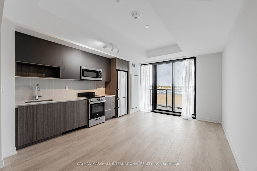 Live minutes from the waterfront and only 15 minutes to downtown Toronto in this brand-new 1 bedroom + den suite at Curio Condos. With Mimico GO Station just 4 minutes away, commuting and city nights out are effortless, while weekends bring easy access to lakefront trails, sunrise strolls, and fresh lake breezes. This thoughtfully designed home features brand-new appliances, an open-concept living area, and a versatile den perfect for a home office or guest space. Parking is included, with the locker conveniently located on the same floor for added ease. Residents get to enjoy a vibrant collection of amenities, including a stylish Café Hub, gaming and entertainment lounge, co-working spaces, creative workshop, and a rooftop terrace with BBQs, kids play area, and pet-friendly zone. Wellness is built right in with a fully equipped fitness centre and yoga/stretch studio. Whether you're working from home, entertaining friends, or enjoying a sunset by the lake, this is contemporary condo living at its finest.