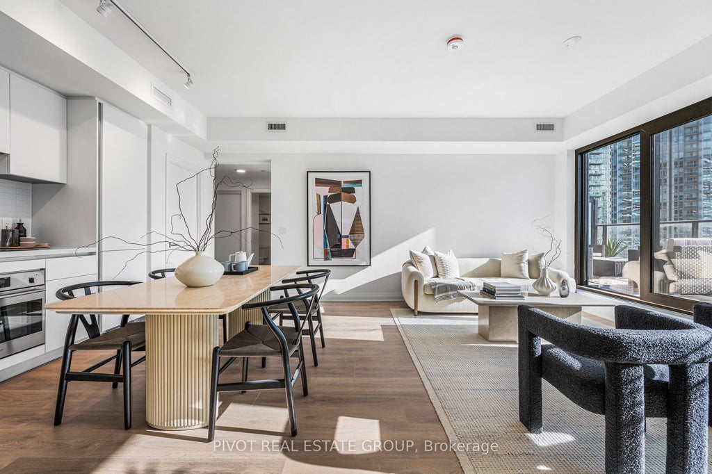 Live at the heart of the vibrant Exchange District. Welcome to EX1 at 4015 The Exchange in the heart of downtown Mississauga, steps to Square One! Feel comfortable in this bright and spacious 2 bedroom suite with beautiful luxurious modern finishes. This beautiful corner unit features an expansive 500sf west facing terrace with views of Celebration Square and the Mississauga Skyline. Balcony from primary bedroom with views of Square One. Well appointed interior designs and finishes including: approx 9' ceilings in living/dining room and primary bedroom, Integrated appliances, imported Italian kitchen cabinetry from Trevisana, Quartz countertops, Latch innovative smart access system, Kohler plumbing fixtures. Taxes not yet assessed. Geothermal heat source. 2 Parking & 1 Locker included.