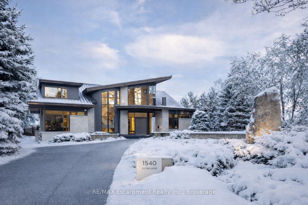 1540 Watersedge Road is a spectacular waterfront estate with jawdropping Toronto skyline views. Modern, private, and completely reimagined with extensive updates on all 3 levels and the exterior, including roof, flooring, staircase, automation, lighting, interior decor, redesigned garage and pool, with exterior landscaping including maintenance free lawn. Every element was designed to capture skyline views, natural light, and a lifestyle without compromise. Set on 0.6 acres along Lake Ontario, the residence showcases bold lines of glass, stone, and steel. Inside, walls of windows frame water and city vistas from every angle. The great room commands attention, anchored by a striking 360-degree fireplace. Heated floors and an elevator to all levels ensures both luxury and ease. A NEFF kitchen with pantry and laundry area balances style and function. The main-floor principal bedroom offers a spa-inspired ensuite and direct walkout to the deck. A versatile flex room, ideal as a gym or office, enhances the living space. Upstairs, three bedrooms with ensuites provide privacy and flexibility- two with terraces that extend directly to sweeping lake views. The lower level is designed for entertainment, featuring a home theatre, games lounge, secondary kitchen for catering and snacks, and guest suite. For the car enthusiast, the garage is exceptional, with epoxy flooring, custom cabinetry, and parking for six vehicles. Outdoors, the property becomes a private resort. A reimagined infinity-edge pool and spa by Gibson Pools stretches toward the horizon. Multiple terraces, dining areas, and lounging spaces are surrounded by perennial gardens and architectural features, blending beauty with simplicity.1540 Watersedge Road is a rare opportunity: a refined estate for contemporary living, equally suited for epic entertaining, where design, privacy, and breathtaking views meet on the lakefront. LUXURY CERTIFIED.