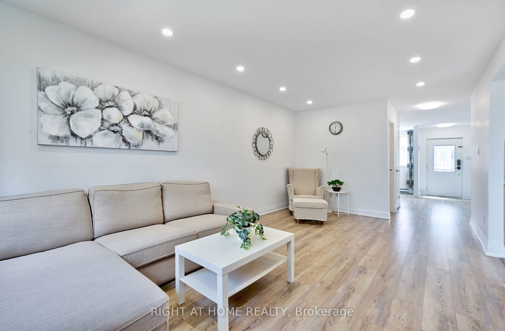 Stunning beautiful fully renovated townhouse in the heart of Clarkson, where modern elegance meets everyday convenience. The entire home has been freshly painted with Benjamin Moore premium paint, complemented by elegant lighting, including designer pot lights in the living room, smooth ceilings, and LED lighting throughout. The gourmet kitchen boasts custom premium cabinets, sleek sintered stone countertops, and a full-height backsplash, while the bathrooms feature quartz countertops and premium vanities. Luxury laminate flooring flows seamlessly throughout, accented by modern baseboards, stylish new doors, and premium tile work in the kitchen, powder room, and bathrooms. Enjoy newer stainless steel appliances, a portable A/C unit, and a custom wooden staircase. Outside, your private oasis awaits with a fully fenced backyard and patio, perfect for entertaining. Additional perks include a keyless entry storm door, one underground parking spot, and a family-safe upper level with no vehicle access. Located just a 2-minute walk from Clarkson GO Station, top schools, Lake Ontario trails, and shops, this rare gem offers the perfect blend of luxury, comfort, and prime location ideal for families and professionals alike! Don't miss this great rare opportunity!