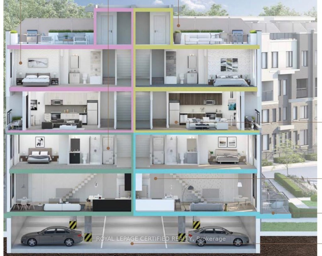 Spacious and modern 2-bedroom, 3-bath stacked townhouse offering 988 sq.ft. of total living space. Features a bright east-facing layout with treeline views and a large private rooftop terrace equipped with a gas line for BBQ, electrical outlet, and water hose connection. Conveniently located steps to Erin Mills Town Centre, South Common Shopping, community and recreation centres, and scenic walking trails. Close to Credit Valley Hospital, Mississauga Transit, and both Erindale and Clarkson GO Stations. Includes one underground parking space and a private storage locker.
