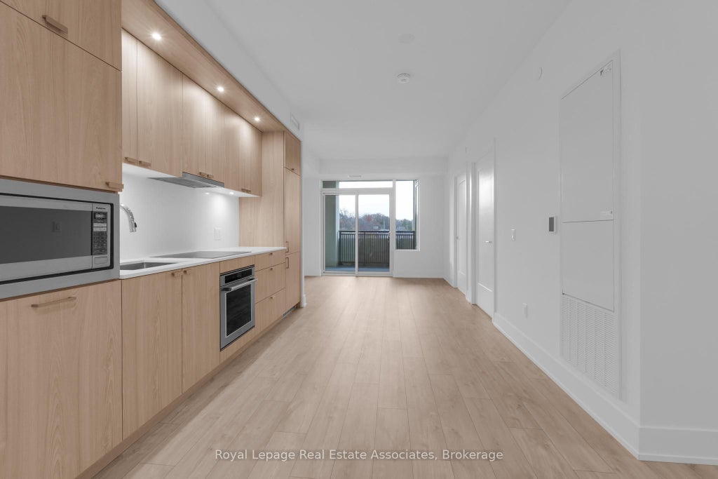Welcome to Edenbridge by Tridel, a modern community offering refined living in the heart of The Kingsway. This bright 1-bedroom plus den suite features 644 sq. ft. of thoughtfully designed space with clean contemporary finishes and a functional open-concept layout. The sleek kitchen includes full-height cabinetry, integrated stainless steel appliances, quartz countertops, and under-cabinet lighting, flowing seamlessly into the living and dining area. Wide-plank flooring and large windows enhance the airy feel of the space, while a walk-out from the living room leads to a private balcony that extends your living area outdoors. The bedroom offers a full-height window and a generous walk-in closet, with easy access to the modern 4-piece bathroom featuring porcelain tile and a contemporary vanity. The den provides versatility for a home office or quiet work area, and in-suite laundry is conveniently tucked into a dedicated closet. One parking space is included for added everyday convenience. Residents enjoy a full lineup of amenities including a fitness centre, indoor pool, sauna, rooftop terrace, guest suites, and 24-hour concierge. Steps from Humbertown Shopping Centre, transit, parks, and top-rated schools, this suite offers stylish comfort and convenience in one of Etobicoke's most desirable communities.